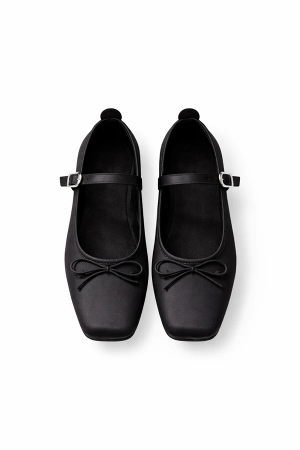 Kadın Küt Burun Topuklu Ayakkabı Babe Fiyonklu Siyah Saten